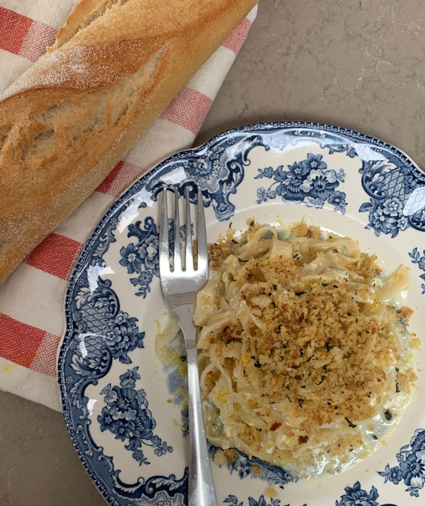 It’s a recipe booster, taking simple food a step up without too much effort. The crunchy salty punch of flavour from the breadcrumbs sprinkled over a simple creamy spaghetti is one of my favorite fast comfort foods. Add some lemon zest to it and it’s a five-star dish that took a minute longer than the pasta took to cook in the first place.